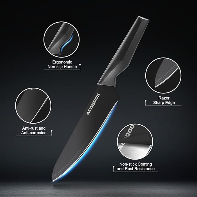 • Non-stick & Rust-resistant: The black coating prevents the steel from oxidizing, so kitchen knife set will stay non-stick and rust-resistant for years to come