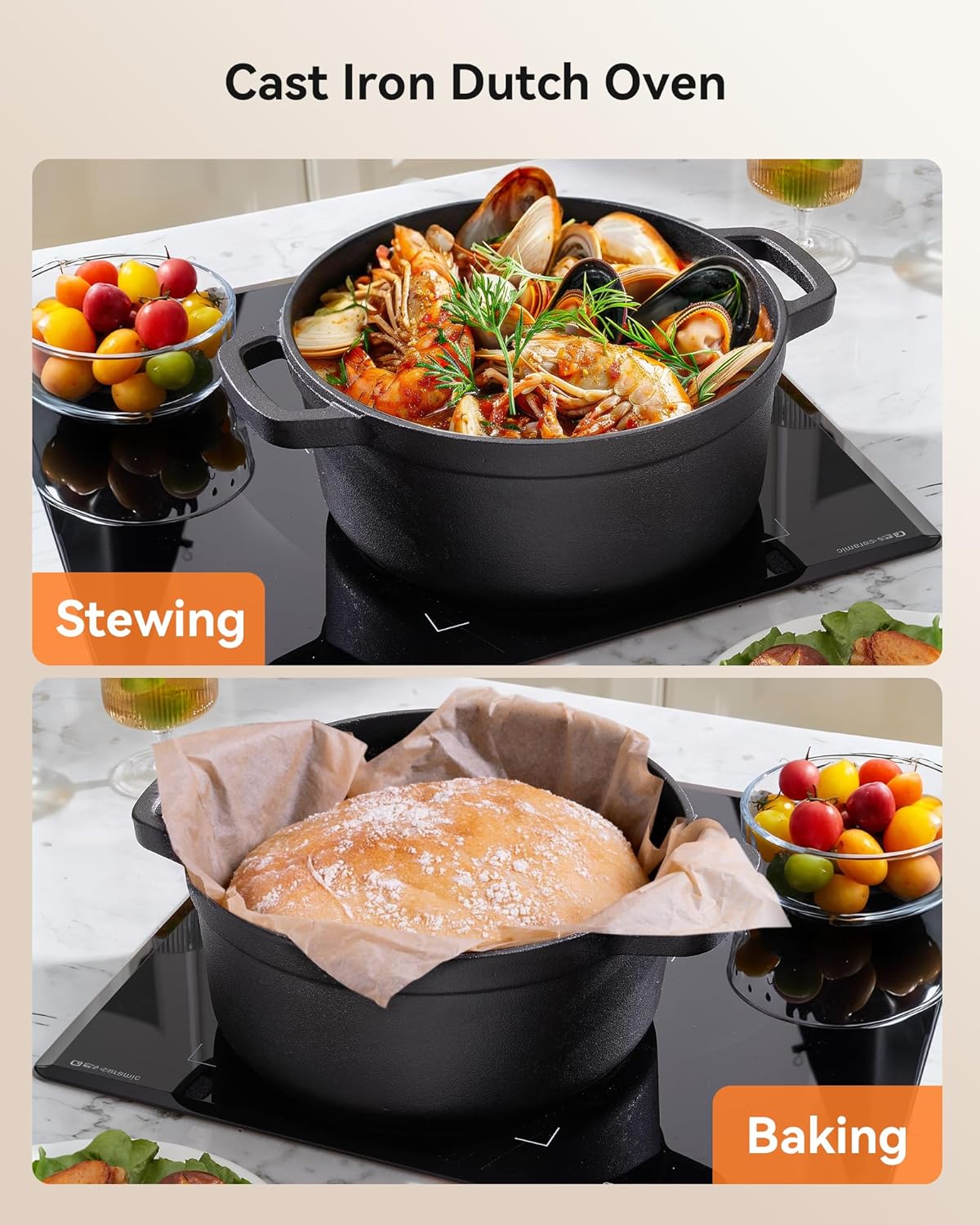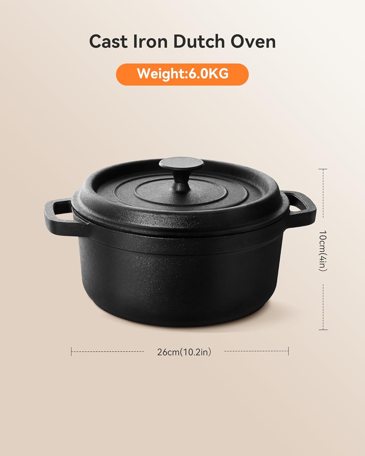 - 【Heat Evenly and Good Heat Preservation】Cast iron dutch oven is heated distribution evenly,which helps to cook food more easily;Due to its excellent heat retention of properties,cast iron dutch pot is suitable for long time stewing to keep food warm.