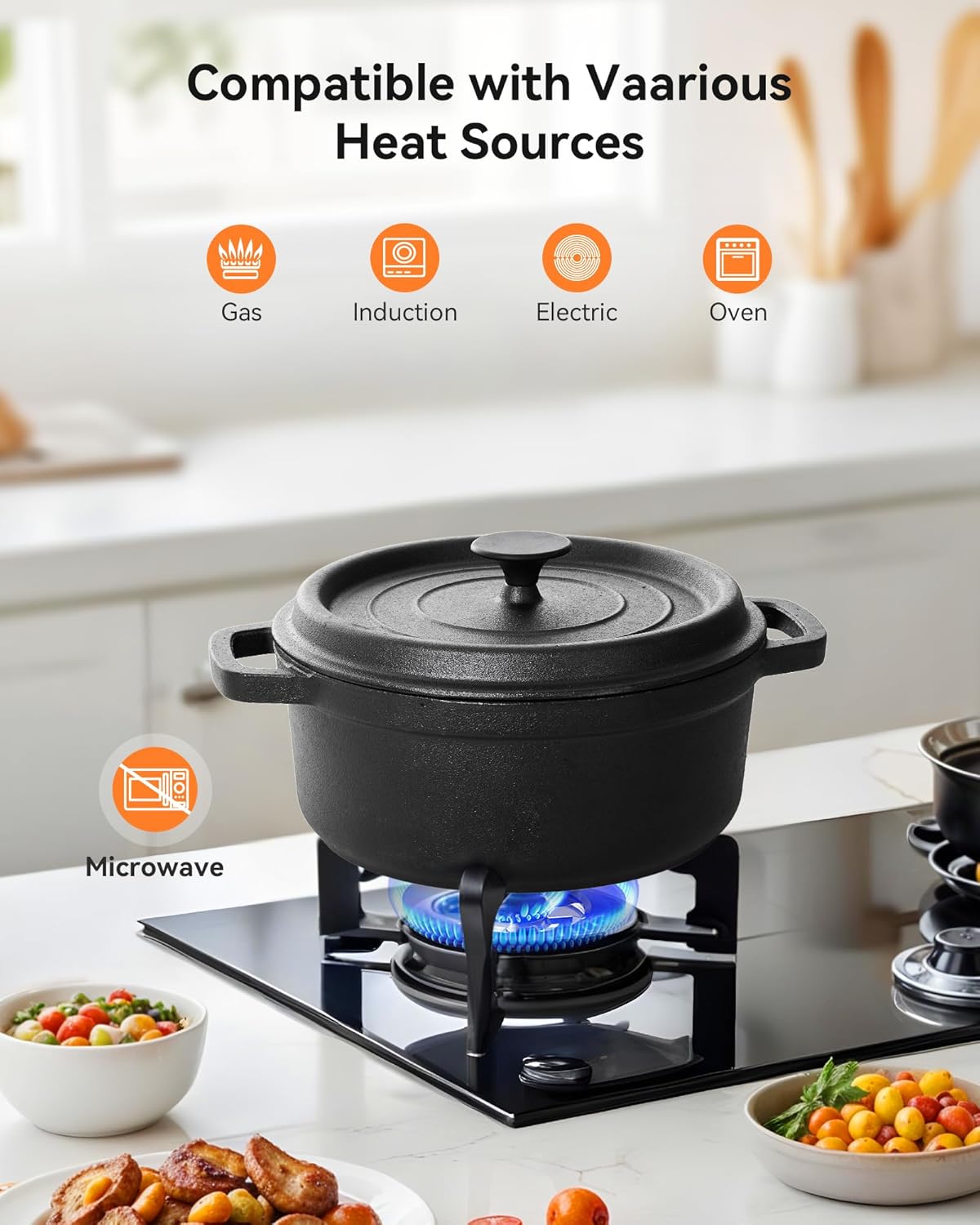 - 【Widely Use】The cast iron dutch oven can be used on gas induction electric hob and oven,but no microwave.This Cast iron pot is good at cooking stewing baking frying indoor or outdoor camping.