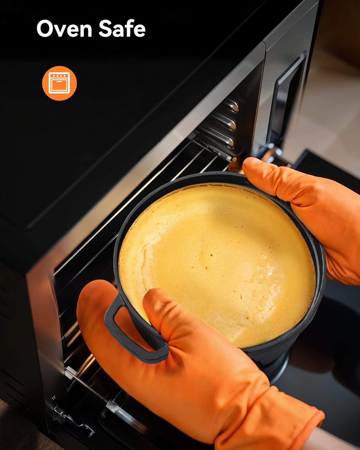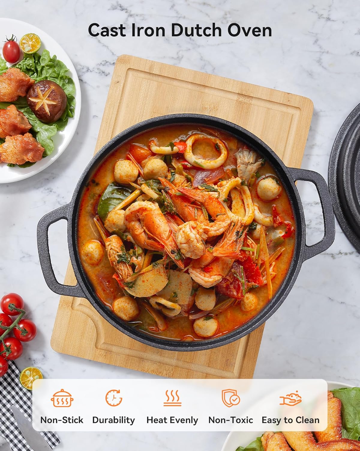 Heat Evenly and Good Heat Preservation】Cast iron dutch oven is heated distribution evenly,which helps to cook food more easily;Due to its excellent heat retention of properties,cast iron dutch pot is suitable for long time stewing to keep food warm